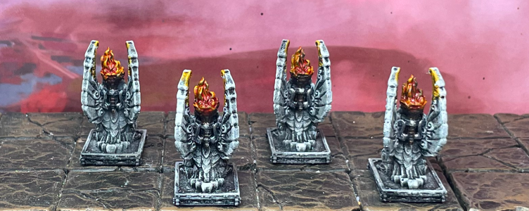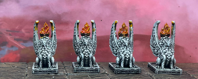 Let’s start off with this detailed-soaked Griffin Brazier by Loot Studios. This unique light source runs hot, surrounded by intricate stone carvings. This imposing TTRPG model is from their fun Loxwort Academy set.