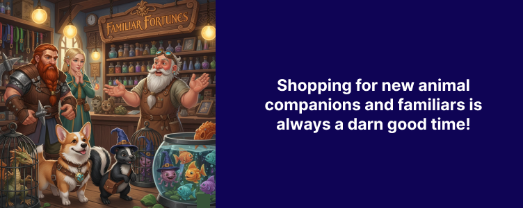 DM Ben isn’t quite sure what the stats will be on our newest comfort critters, but DM Ben wants to build on this series. First, he loves incorporating diverse pro-party creatures into our campaign. Second, we always enjoy creating new NPCs. So, we’ll follow this one up with more best-friend beasts, a quirky shop owner, and even some supporting scatter terrain to really sell the overall DnD scene.
