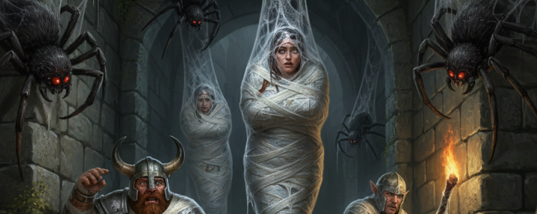 Let’s begin with the classic webbed body, certainly made iconic by that brilliant scene in The Lord of the Rings: The Return of the King, where poor Frodo gets spun up by the monstrous spider, Shelob, in the Pass of Cirith Ungol. DMs love to create similiar iconic movie scenes in their own campaigns, as that immersion evokes such strong nostalgia feels.
