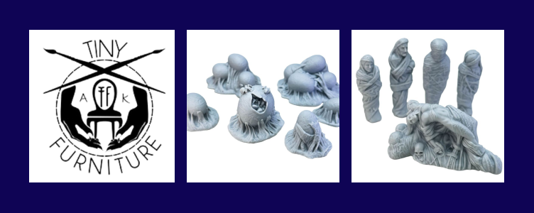 The set is titled “Spiders Attack” and is by the talented team at Tiny Furniture. We’re going to split the set into two featured posts, but most of the pieces will get the spotlight today. We’ve sent their sturdy STLs to our 3D printers many times and can’t recommend them enough. Their monthly Patreon is also a steal at $8 per month.