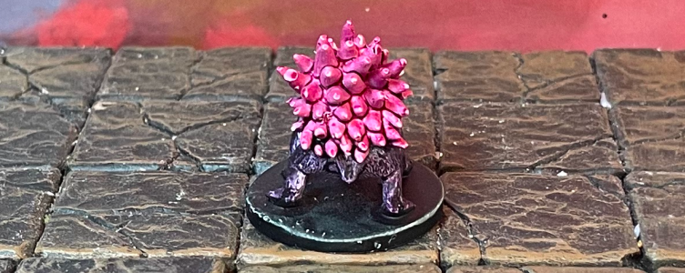 Sunrise Sven stepped up and painted this mysterious, unlikely harmless creature. He went with two complementary colors: good ol’ purple and some bright pink. We’re fans of the paint scheme here as DM Ben wants to keep the group guessing when freaky thing comes sauntering out from some bushes.