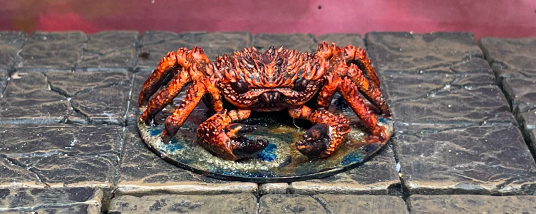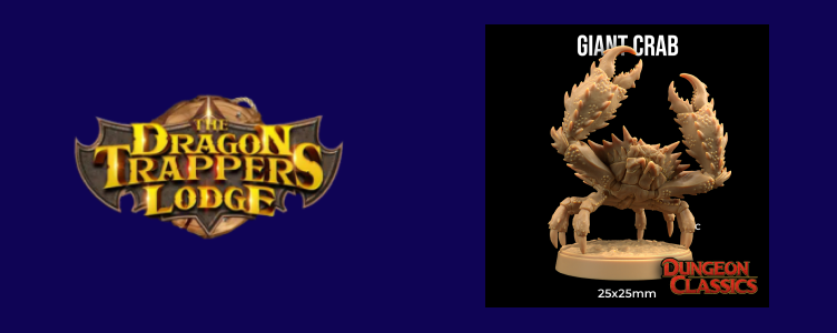 We’ll start with this pesky Giant Crab by The Dragon Trappers Lodge. This snappy lil’ fella is from their Dungeon Classics December Patreon release. We really don’t like tiny minis as they’re such a pain to paint, and it’s not like our older gamer eyes are doing us any favors at the game table. Hence, we bumped up this STL to a full d20 square to give him a little girth.