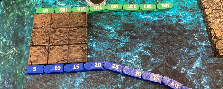 We are a TTRPG 3D printer blog after all, so we felt it was important to do a follow-up entry and share the STL we liked the most from our research. Our favorite free file comes from Designs by Davyd and what he calls his Flexi D&D Ruler. The green version is our store-bought one, and the blue one is one we 3D-printed ourselves. At first, we thought the measurement was off, but it’s just an optical illusion because the first link is missing that flexible circle in front of the number.