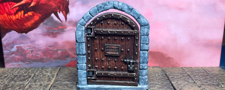 DM Ben chose ASP Rudy Fur for the door’s primary wood color, as that rich, dark red spoke to him as a quite heavy, reinforced door.
