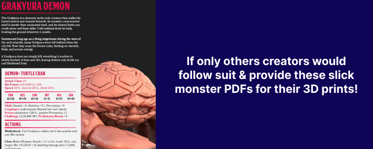 Our saucy STL is from the immensely talented team over at STL Miniatures – a staple in our beloved DnD 3D printing community. As part of their monthly Patreaon, they released this magnficent, freaky-a$$ creature…meet the Grakyura! Half turtle and half crab, this bad guy means business.