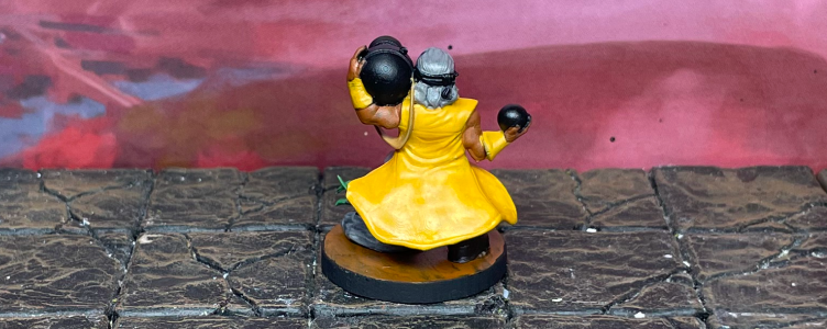 Resident Painter Kimmy Utah embraced bringing this scrappy fella to life through the art of color with both hands. She got everything right with her deep blacks, wavy yellow coat, and brilliant hair features. This is hands down one of our absolute favorite pirate miniatures. We can’t wait to use him in a game!