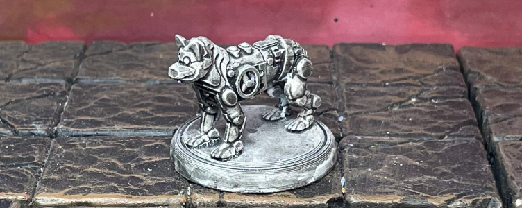 When we met Sunrise Sven online, he was selling a few cool collections: a set of statues (like this robo dog) and all his Lord of the Rings miniatures (which we can’t wait to show you). We were going to paint this one further, but upon further review, we think the lighter gray paint job is really cool and decided not to mess with a good thing.