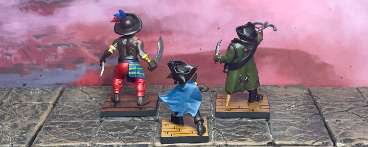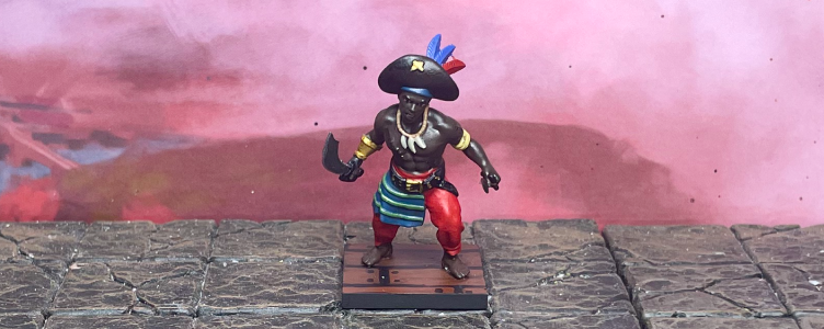 This ripped fella is all bitness and is in no mood to talk. His mighty Cutless answers any and all questions. Kimmy Utah also painted both of these miniatures, so she cornered the paintbrush applications for today’s post. We love how she went with a classic garb look and then accented everything with gold bracers, a great hat, and a necklace filled with stories.