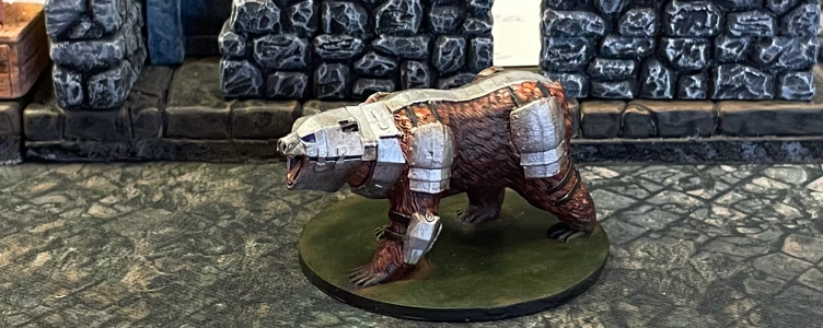 And then, for our Undead Clockwork Bear, we were originally going to add it to the growing list of mechanical animals for Omin Dran’s scenic beautification project, but that’s not a smooth fit because this one is partially alive (part bear, part machine). So, instead, we’ll pivot to this being one of our Collector villain’s prized possessions.