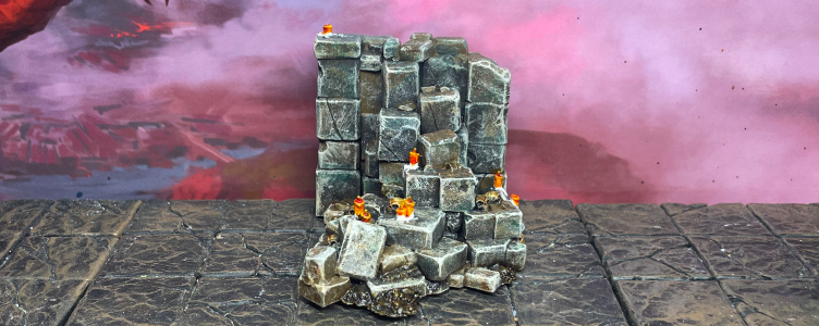 The other 3D-printed dungeon piece we wanted to share today is the Tall Debris STL, also from the same Modular Dungeon set. The larger terrain is mostly rocky ruins and handy platforms that can be dropped into a particular scenario as needed.