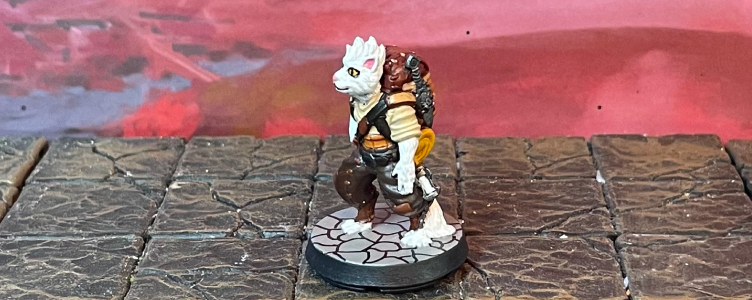 Resident Painter Kimmy Utah was today’s colorist, and she made this DnD mini purrrrrr, baby! We love the white fur coupled with the subtle pink nose and ears. The clothing and bulky backpack paint choices were spot on here. You can practically hear its bulky gear clunking around as this feline friend moseys towards your party.