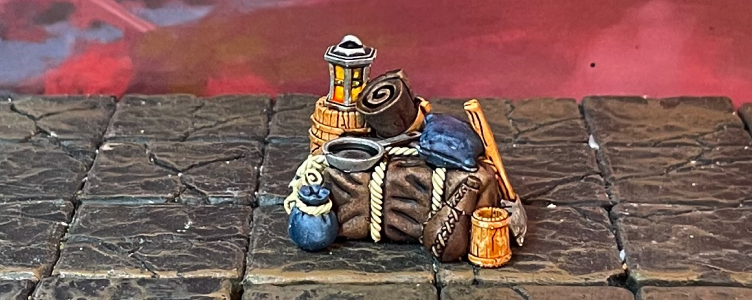 For situations where our miniature doesn’t come with a large knapsack as part of its sculpt, we will use a simple piece of scatter terrain to represent the train traveler’s gear. These more generic pieces of scatter terrain are extremely difficult to source, but it wasn’t for a lack of effort. We searched our bursty MMF library, conducted a Google Image Search, and reached out to some sleuths on Discord. Still, if you want to 3D print something similiar, be sure to check out the STL Miniatures’ Halfling Hostel set.