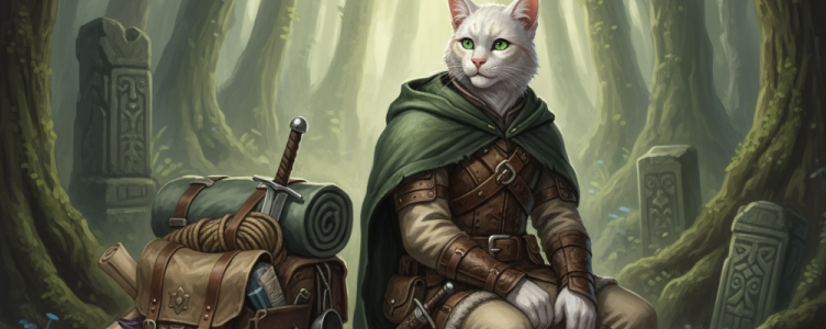 We’re going to name our newest catfolk NPC traveler Renn Sly. He’s a rogue for hire and just wanders from town to town looking for new work. He prefers to steal from the rich and corrupt, but sometimes a cat’s gotta eat and can’t be too picky on what contract to take next.